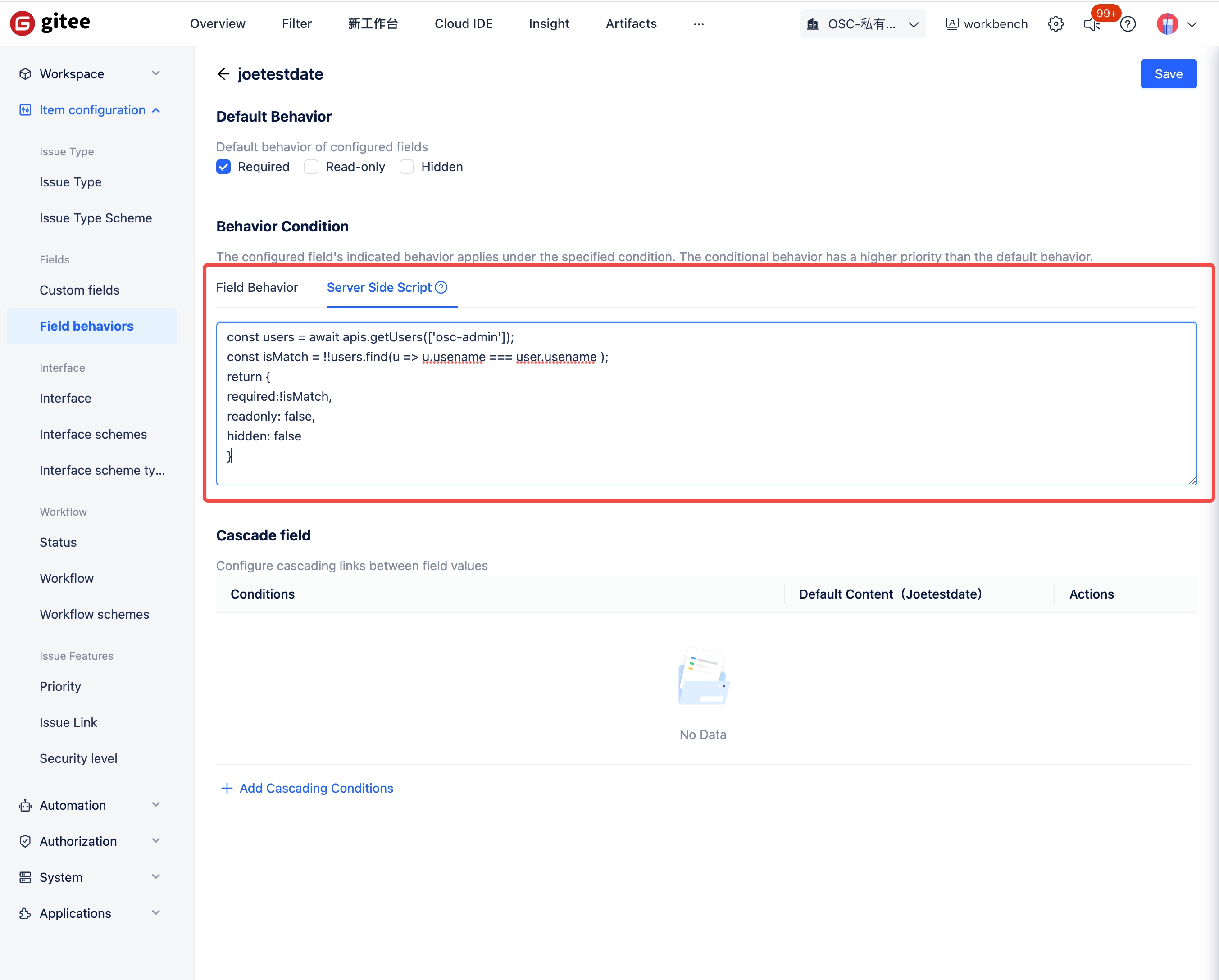 字段行为脚本可以让字段行为拥有更强大的配置。字段行为脚本可以在字段行为的配置中添加: