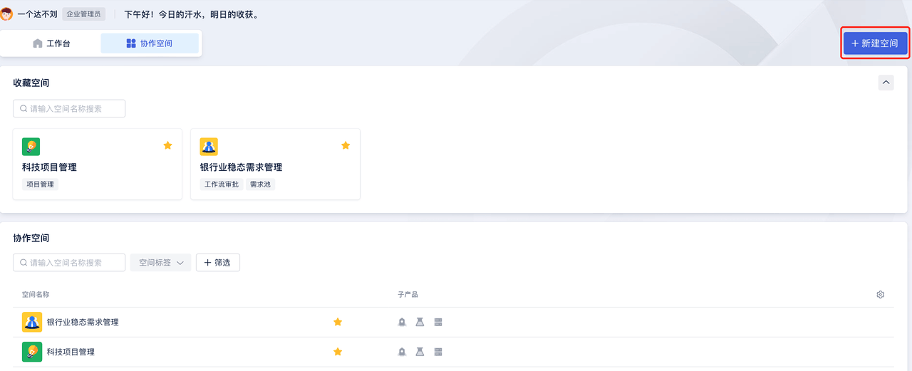 - 空间设置-空间管理者主要配置权限、面板、查看空间配置等信息,详情看空间配置