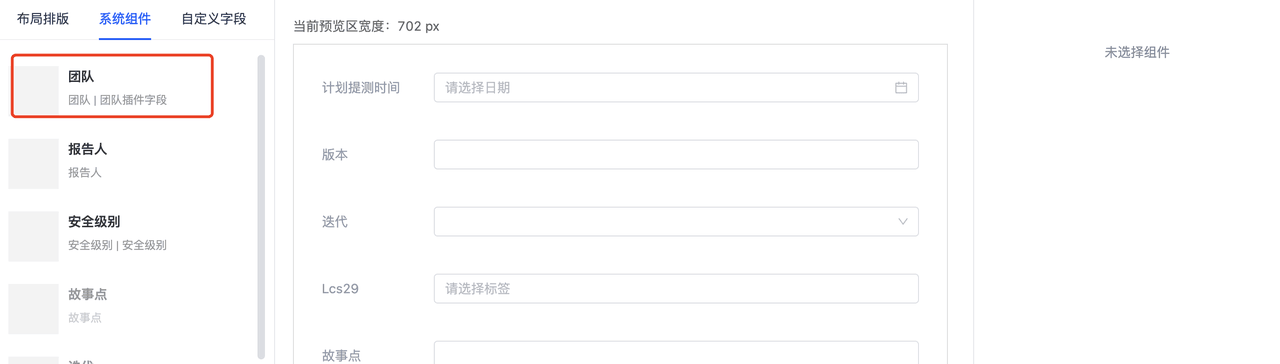 团队开启后在界面配置页将团队拖到对应的界面上,然后再新建事项或者编辑事项时选择将任务/需求分配给哪个团队