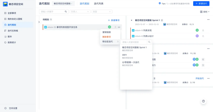 迭代规划功能允许团队成员在每个新迭代开始前,共同审视和确定接下来的工作重点。通过设定明确的目标、任务分解以及故事点的合理分配,团队能够对即将到来的工作有一个清晰的认识和准备,从而提高迭代的效率和质量